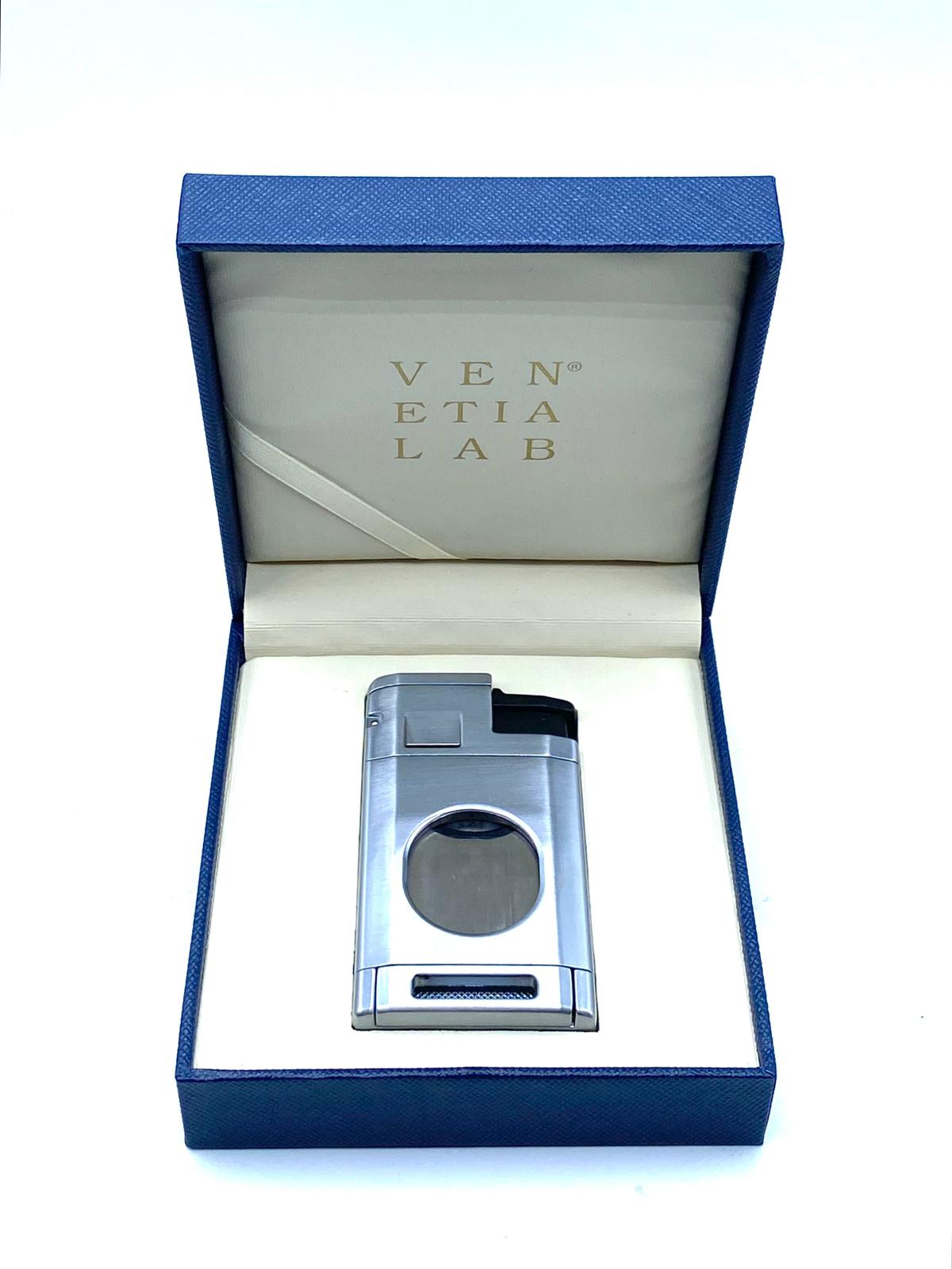 Accendino con tagliasigari argento, accendino Venetia Lab jet flame 3 fiamme